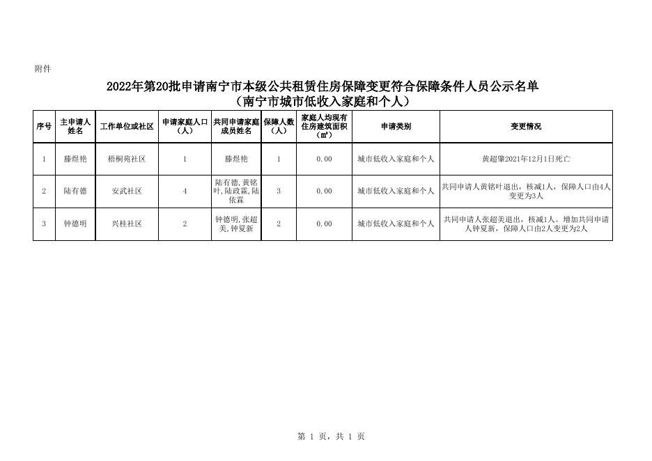 2022年第20批申请南宁市本级公共租赁住房保障变更符合保障条件人员公示名单(南宁市城市低收入家庭和个人).xls
