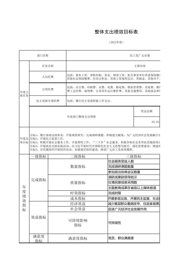 附件2:农工党广元市委2022年部门预算绩效目标表.xlsx