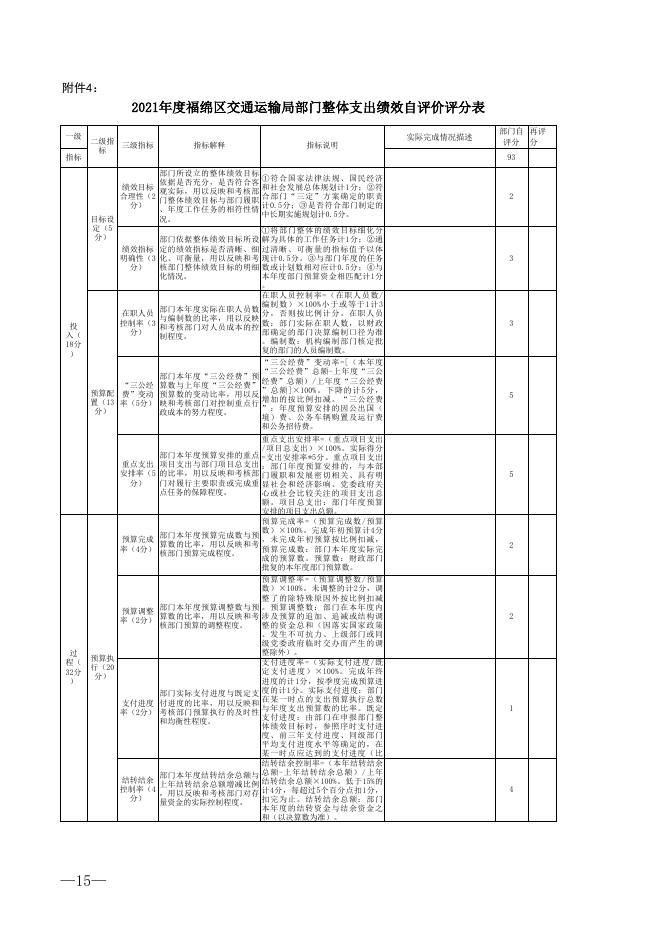 附件4:部门整体支出绩效自评价评分表(加绩效自评指标).xls