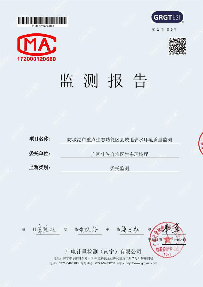 23.防城港市重点生态功能区县域地表水环境质量监测(2021年2月在妙断面监测报告-B202005275674-08-1).pdf