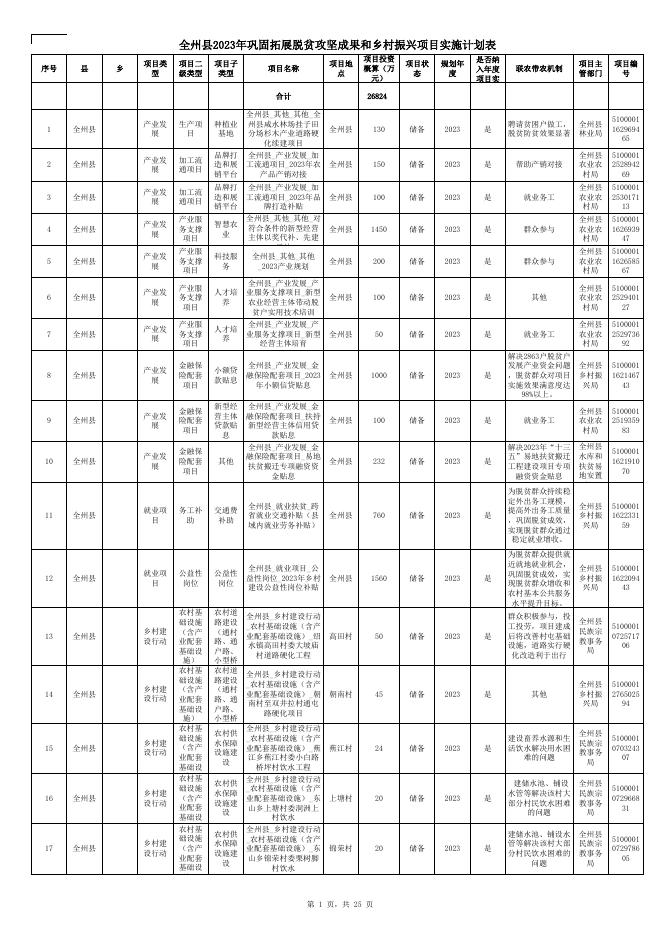 全州县2023年巩固拓展脱贫攻坚成果和乡村振兴项目实施计划表.xlsx