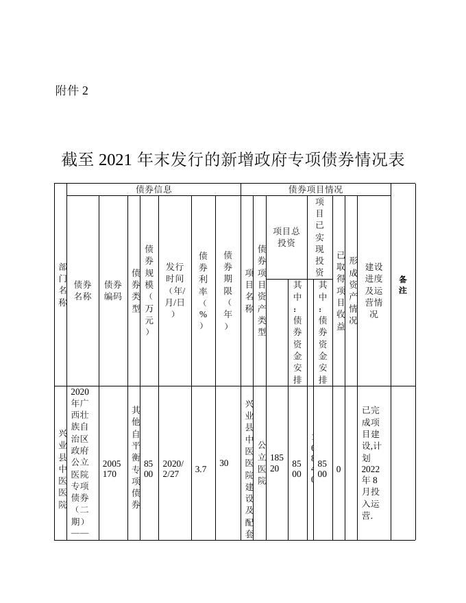 附件2:2021年末发行的新增政府专项债券情况表.docx