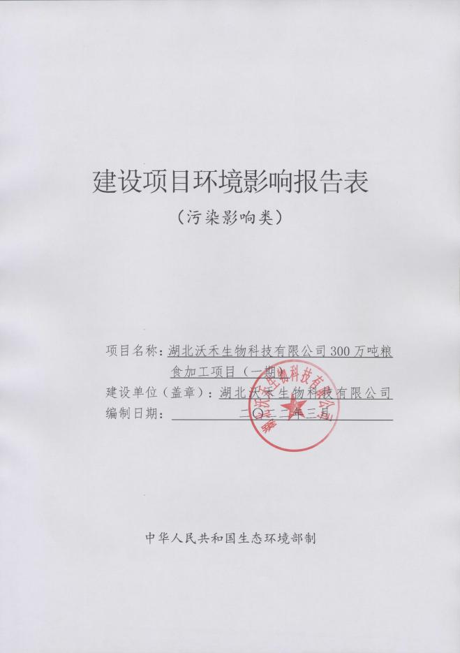 湖北沃禾生物科技有限公司300万吨粮食加工项目(一期)环评报告表-全本.pdf