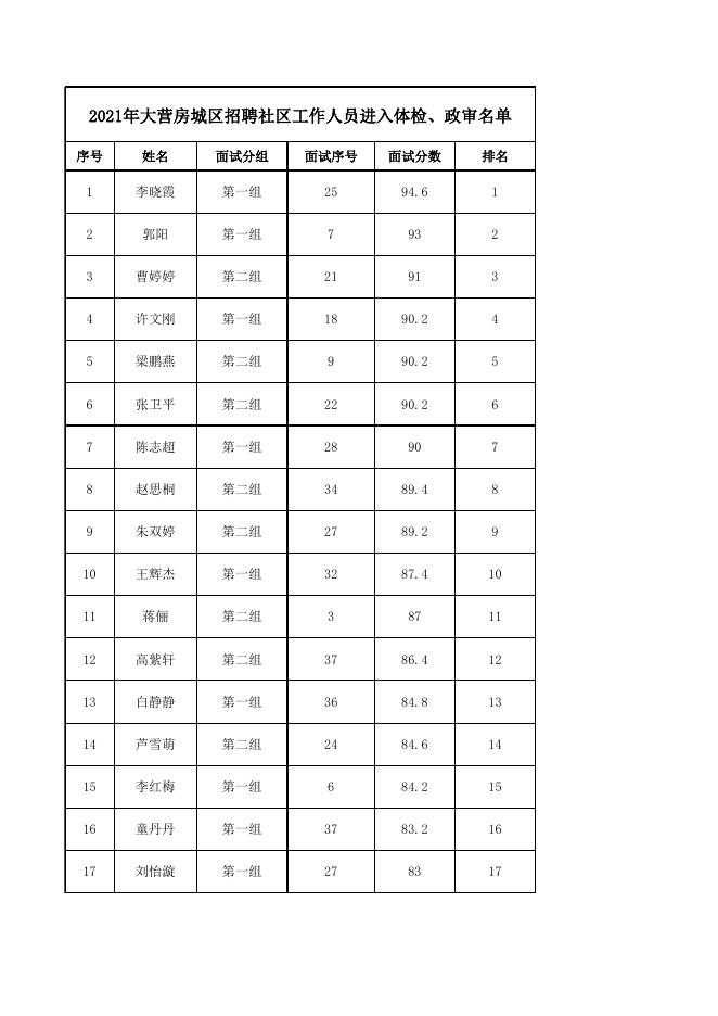 2021年大营房城区招聘社区工作人员进入体检、政审名单.xls