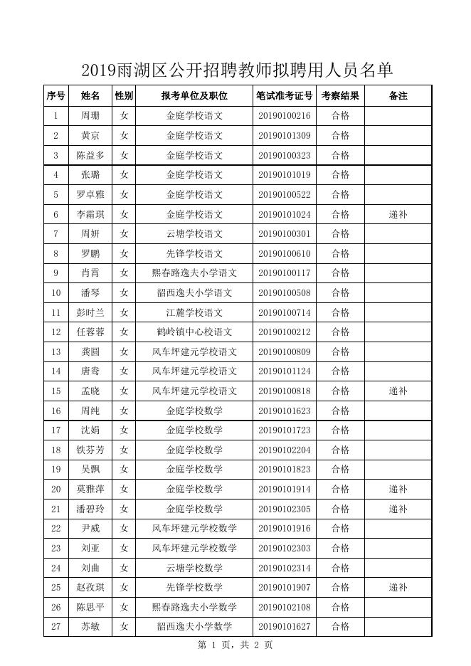 2019年雨湖区公开招聘教师拟聘用人员名单》.xls