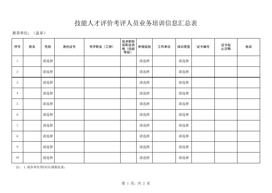 技能人才评价考评人员业务培训信息汇总表.xlsx