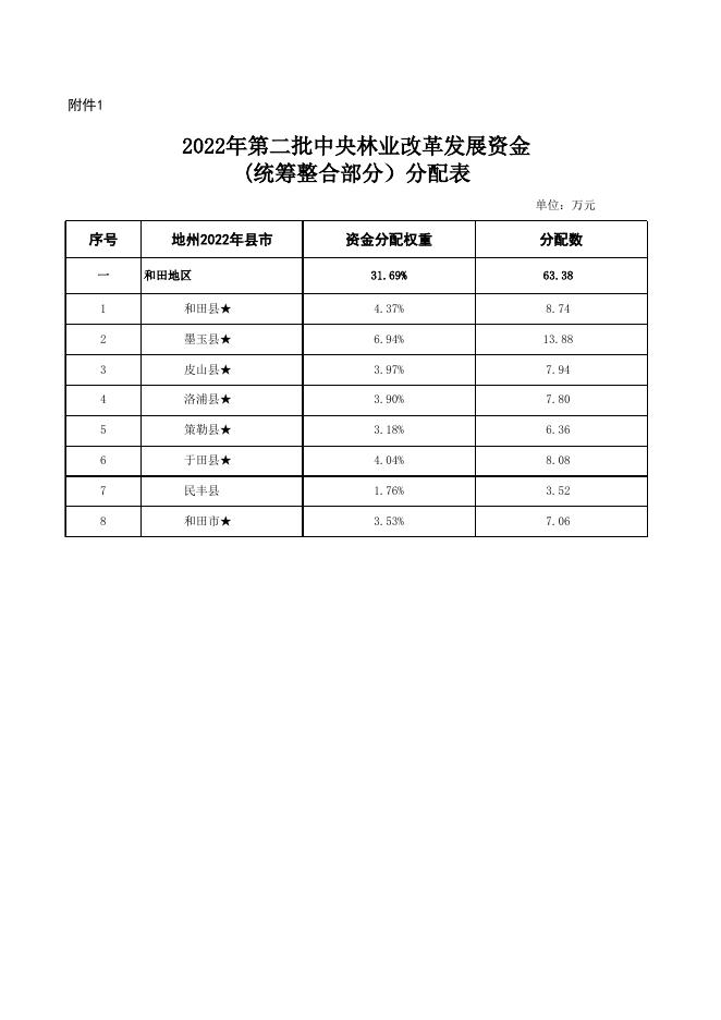 2022年第二批中央林业改革发展资金(统筹整合部分)分配表.xlsx