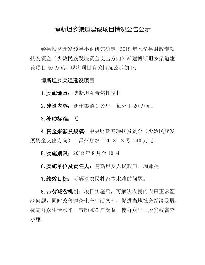 2018年博斯坦乡渠道建设项目公告公示.docx