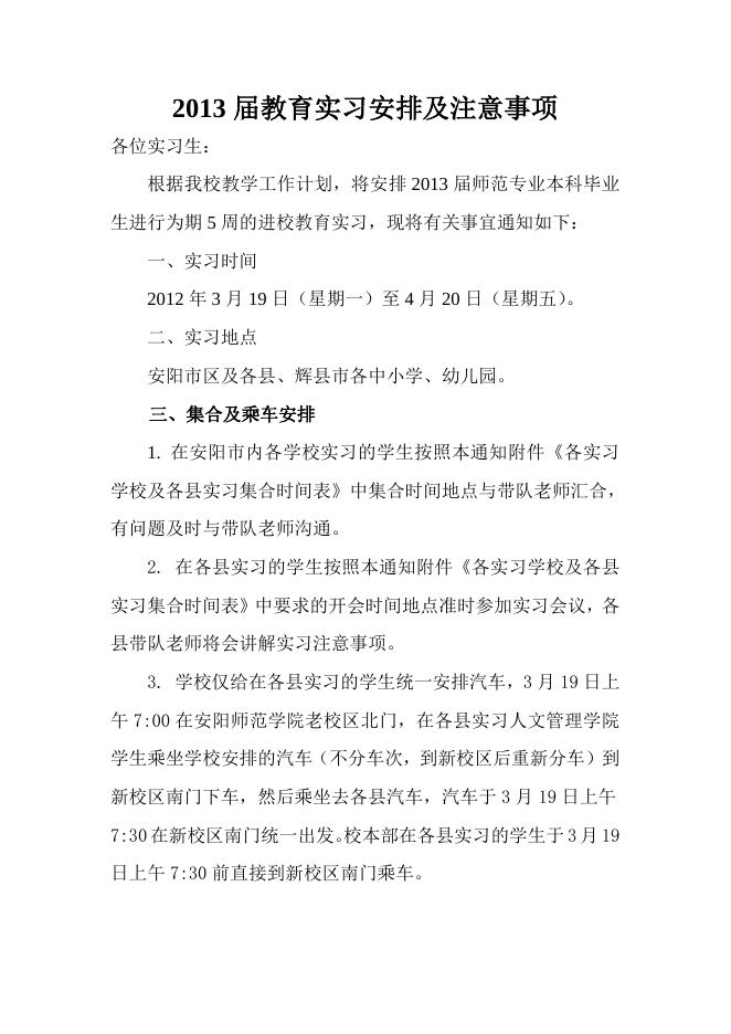 附件2:2013届教育实习安排及注意事项.doc