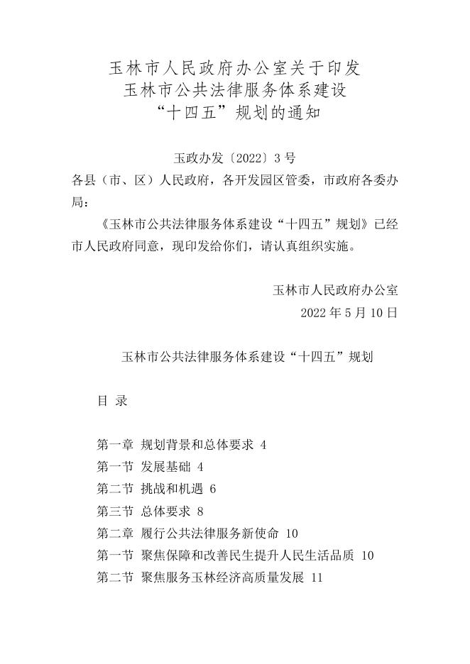 玉林市人民政府办公室关于印发玉林市公共法律服务体系建设“十四五”规划的通知.doc