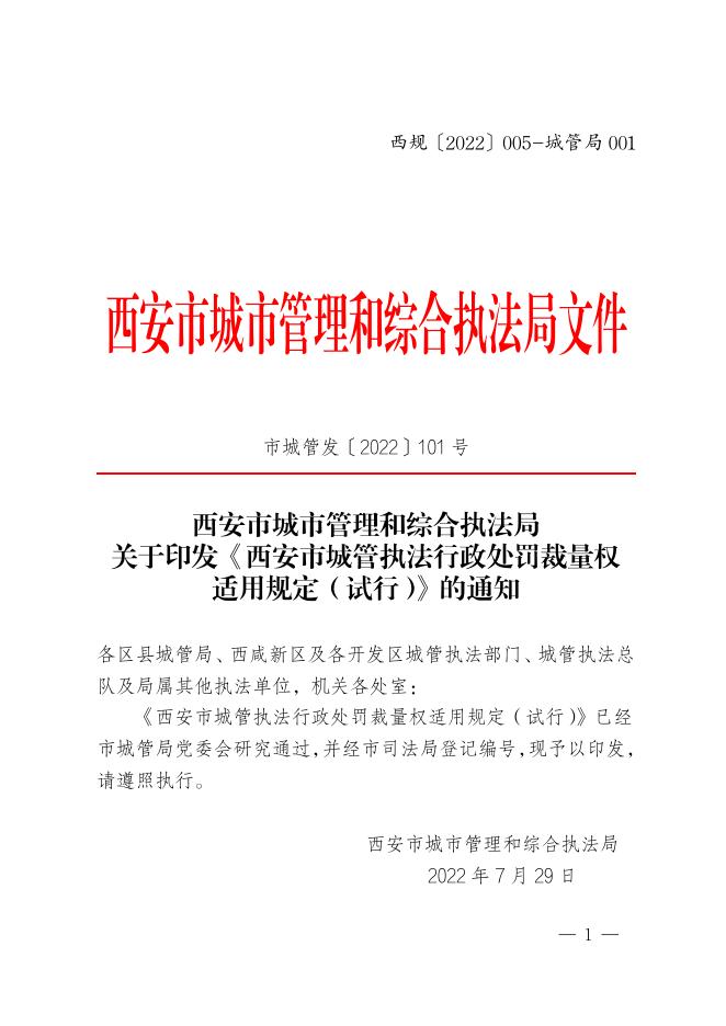 西安市城市管理和综合执法局关于印发《西安市城管执法行政处罚裁量权适用规定(试行)》的通知.pdf