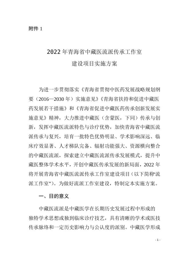 1. 2022年青海省中藏医流派传承工作室建设项目实施方案.docx