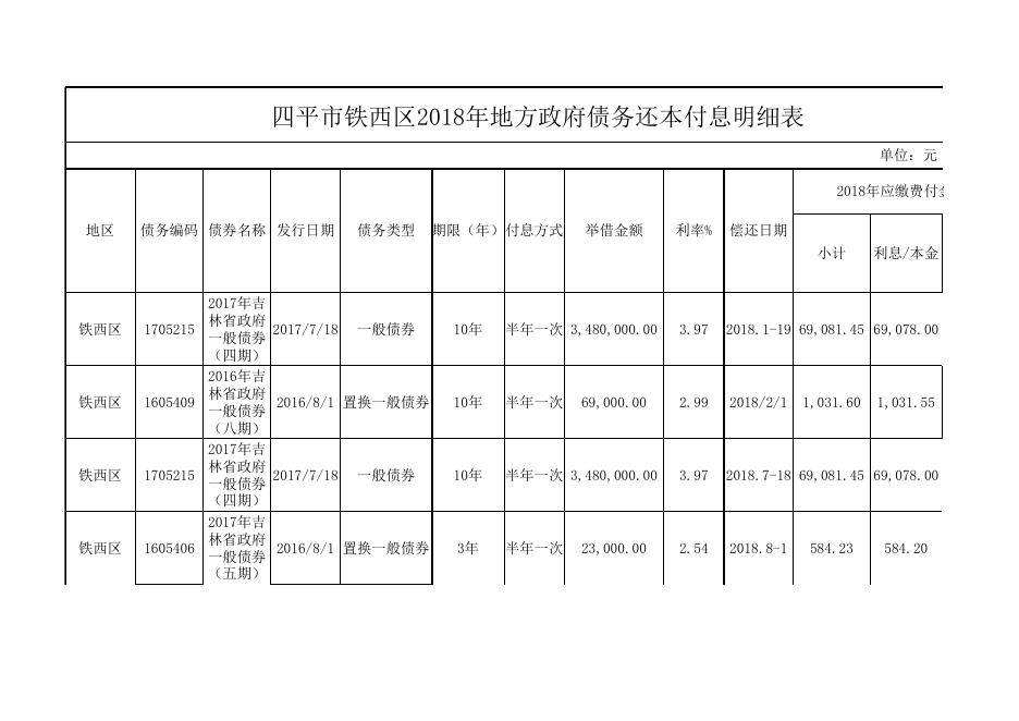 2018年四平市铁西区地方政府债务还本付息明细表.xls