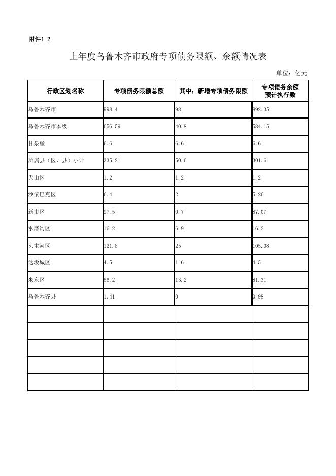 1-2上年度乌鲁木齐市政府专项债务限额、余额情况表.xlsx