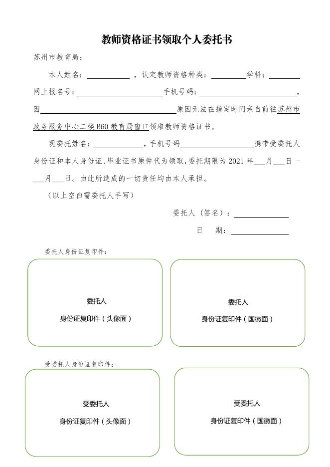 附件2:教师资格证书领取个人委托书.pdf