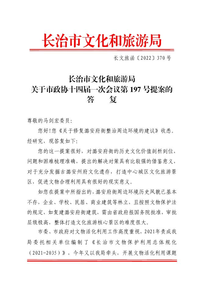 长治市文化和旅游局关于市政协十四届一次会议第197号提案的答复.pdf