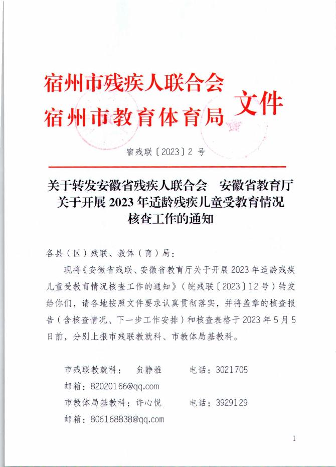 关于转发安徽省残疾人联合会 安徽省教育厅关于开展2023年适龄残疾儿童受教育情况核查工作的通知(宿.pdf