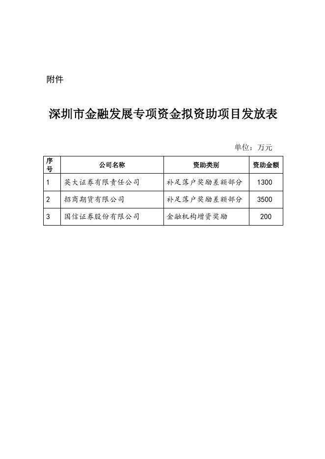 深圳市金融发展专项资金拟资助项目发放表.doc