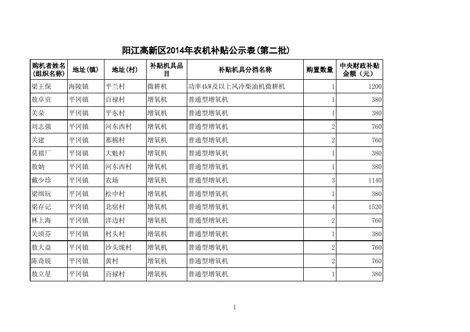阳江高新区2014年农机补贴公示表(第二批) -阳江高新技术产业开发区政务网站.xls