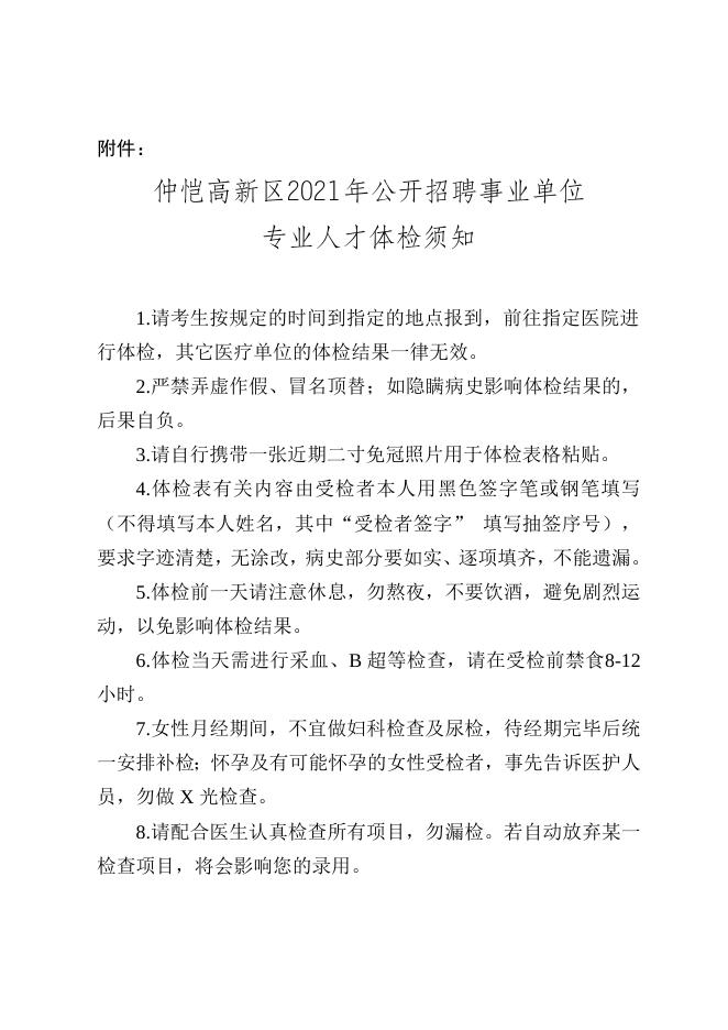 附件:仲恺高新区2021年公开招聘事业单位专业人才体检须知.doc