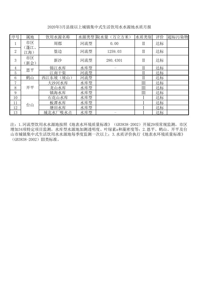 2020年3月县级以上城镇集中式生活饮用水水源地水质月报.pdf