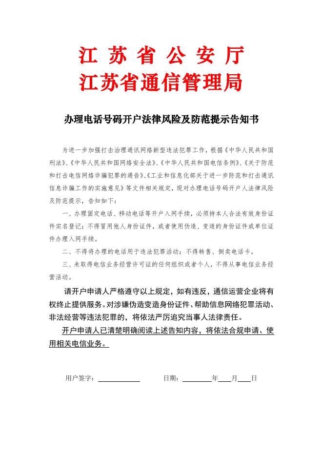 办理电话号码开户法律风险及防范提示告知书.pdf