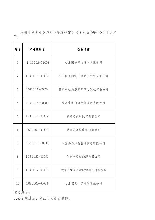 《发电类电力业务许可证》行政许可公示(2022年第11号)_国家能源局-甘肃监管办公室.xls