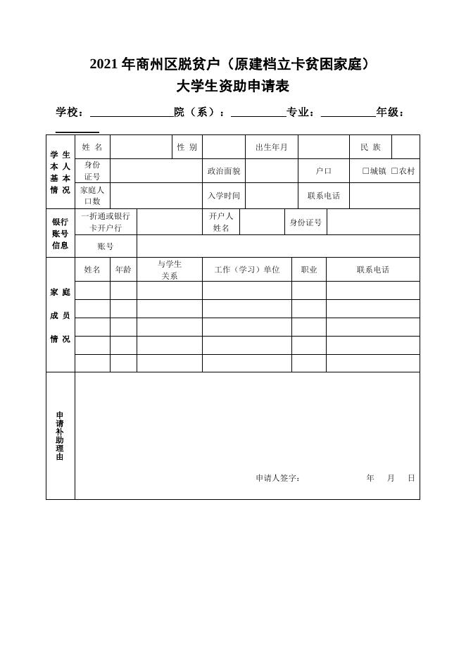2021年商州区脱贫户(原建档立卡贫困家庭)大学生资助申请表.doc