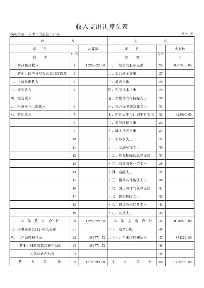 1天津市北辰区审计局2018年部门决算公开表.xls