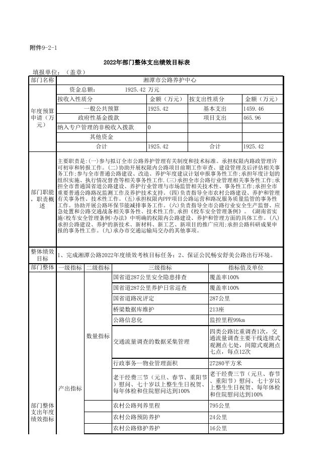 2022年湘潭市公路养护中心部门整体绩效申报表.xlsx