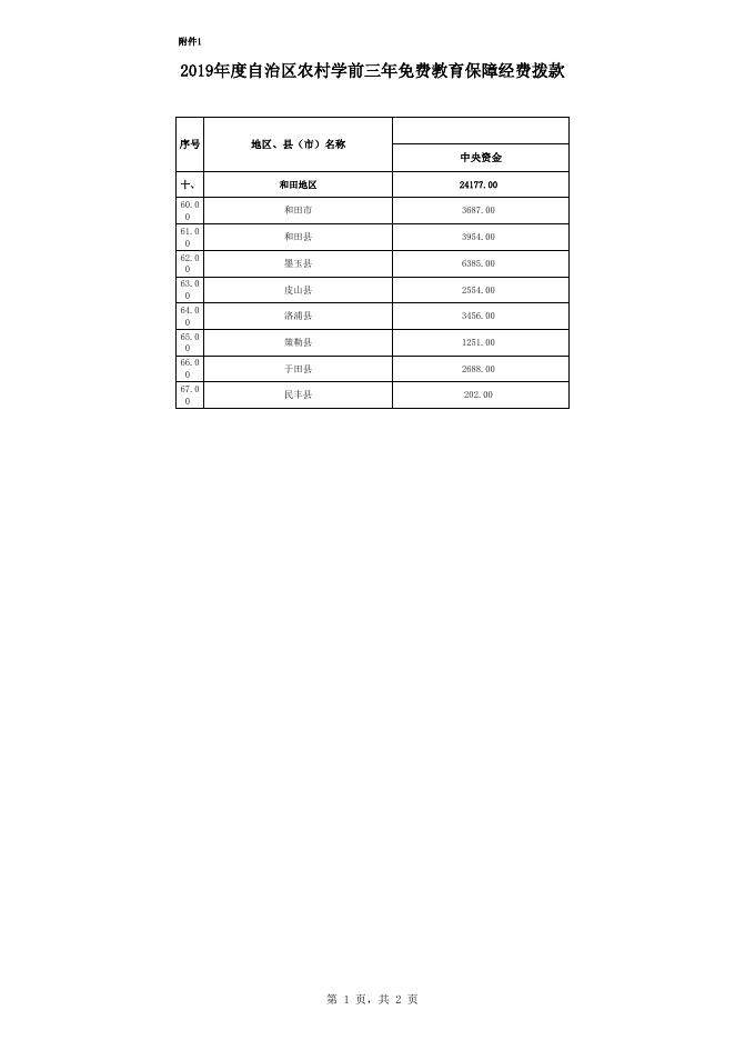 2019年自治区农村学前三年免费教育保障机制经费分配表.xlsx