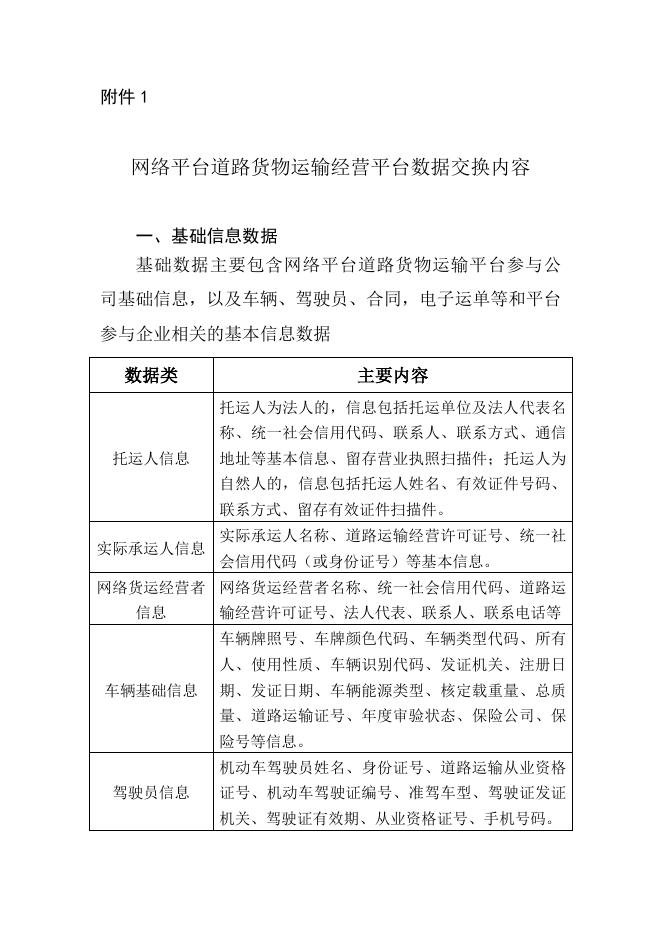 附件1 网络平台道路货物运输经营平台数据交换内容.doc