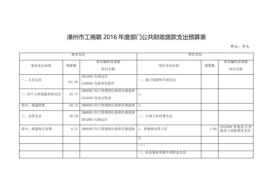 漳州市工商联2016年度部门公共财政拨款支出预算表.docx