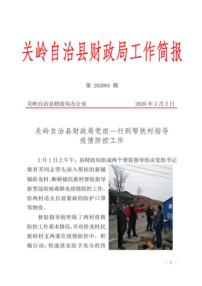关岭自治县财政局2020年第4期信息——关岭自治县财政局党组一行到帮扶村指导疫情防控工作.doc