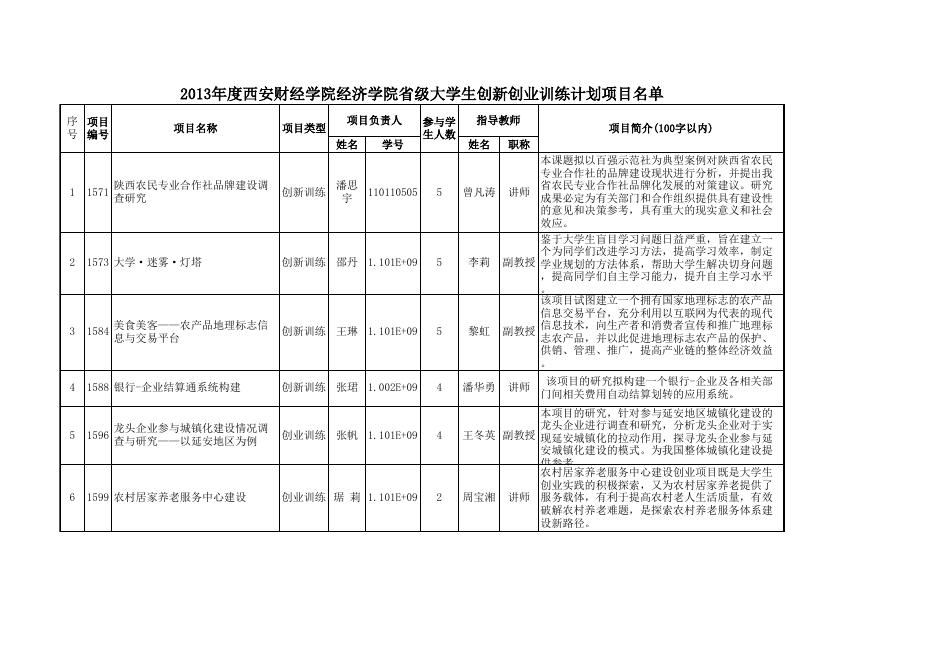 2013年经济学院省级大学生创新创业训练项目名单.xls