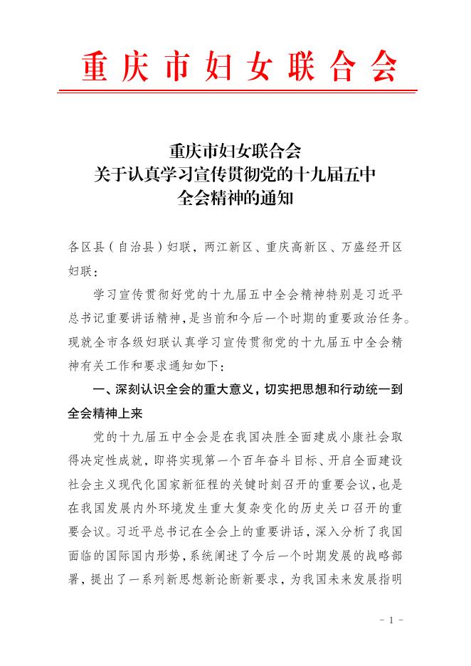 重庆市妇女联合会关于认真学习宣传贯彻党的十九届五中全会精神的通知.pdf