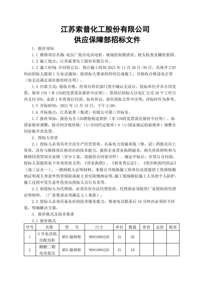 电仪厂低压电房电柜、现场控制箱清灰、桩头检查及螺栓紧固招标文件2021.11.19.doc