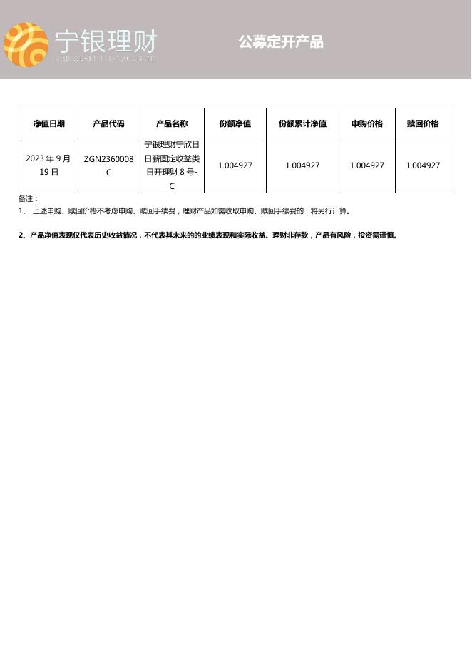 宁银理财宁欣日日薪固定收益类日开理财8号-C_净值披露_20230920.pdf