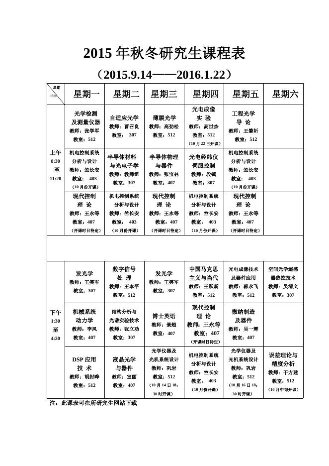 2015年秋冬研究生课程表 - 课程安排 - 网站管理系统.doc