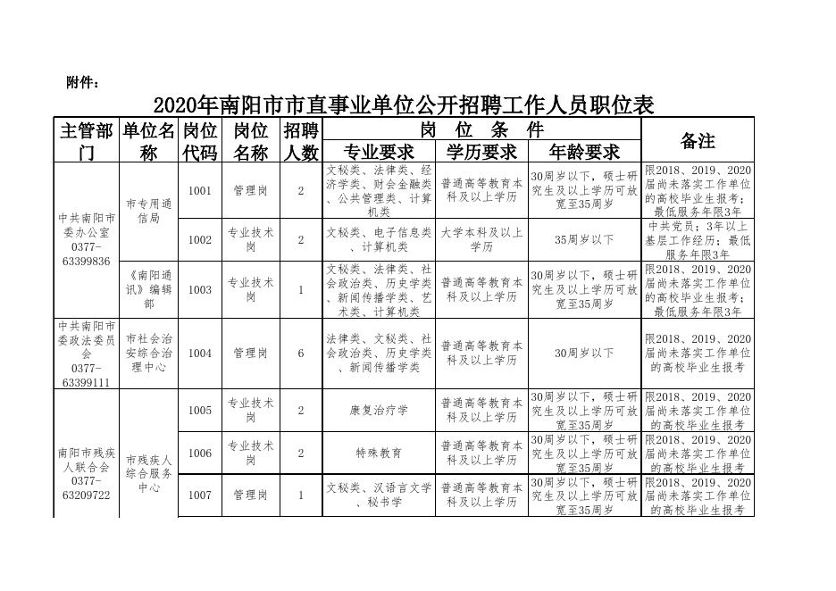 2020年南阳市直**公开招聘工作人员职位表.xlsx
