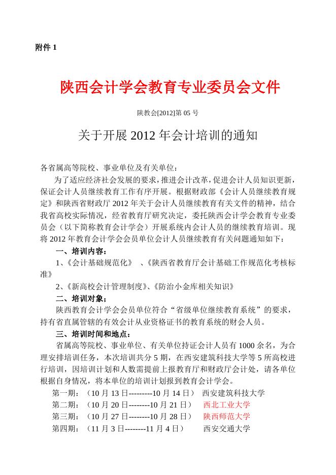陕西教育会计学会《关于开展2012年会计培训的通知》.doc