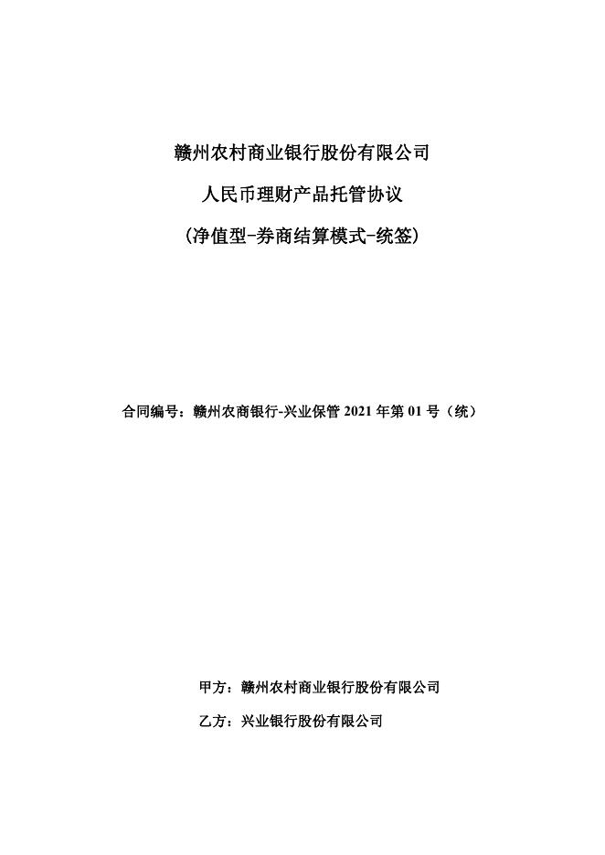 赣州农村商业银行股份有限公司人民币理财产品托管协议(净值型-券商结算模式-统签).pdf