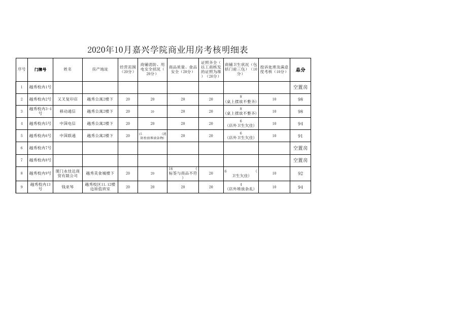 2020年10月嘉兴学院商业用房考核结果公示.xls
