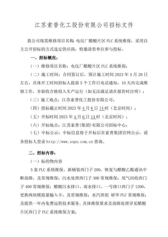 电仪厂醋酸片区PLC系统维保自主公开招标招标文件-股份2023.4.6.doc