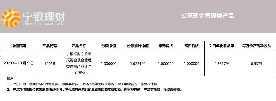 宁银理财宁欣天天鎏金现金管理类理财产品3号-B份额_净值披露_20231010.pdf