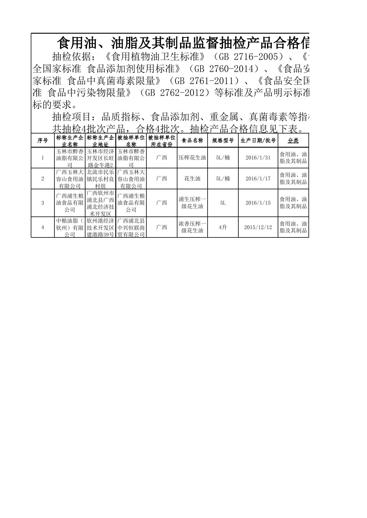 食品抽检合格-20160519-食用油、油脂及其制品.xls