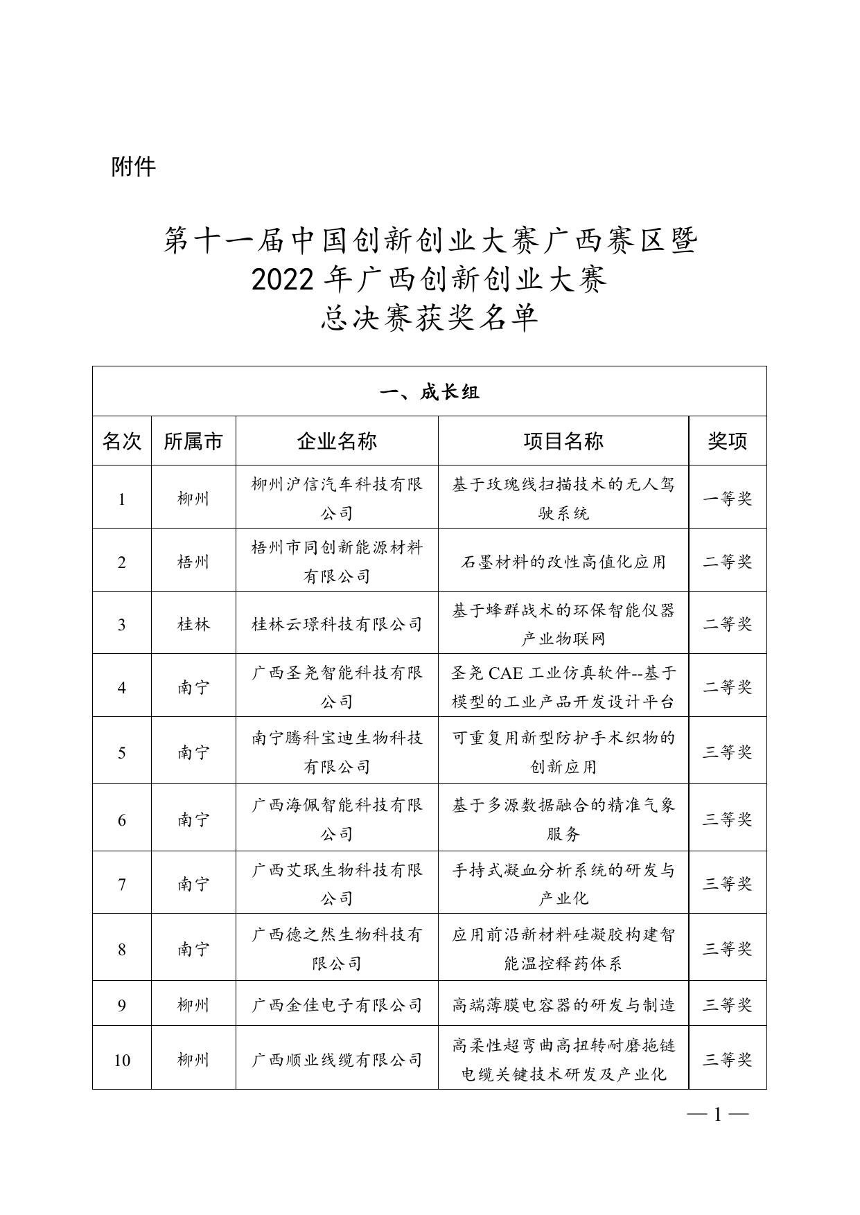 第十一届中国创新创业大赛广西赛区暨2022年广西创新创业大赛总决赛获奖名单.doc