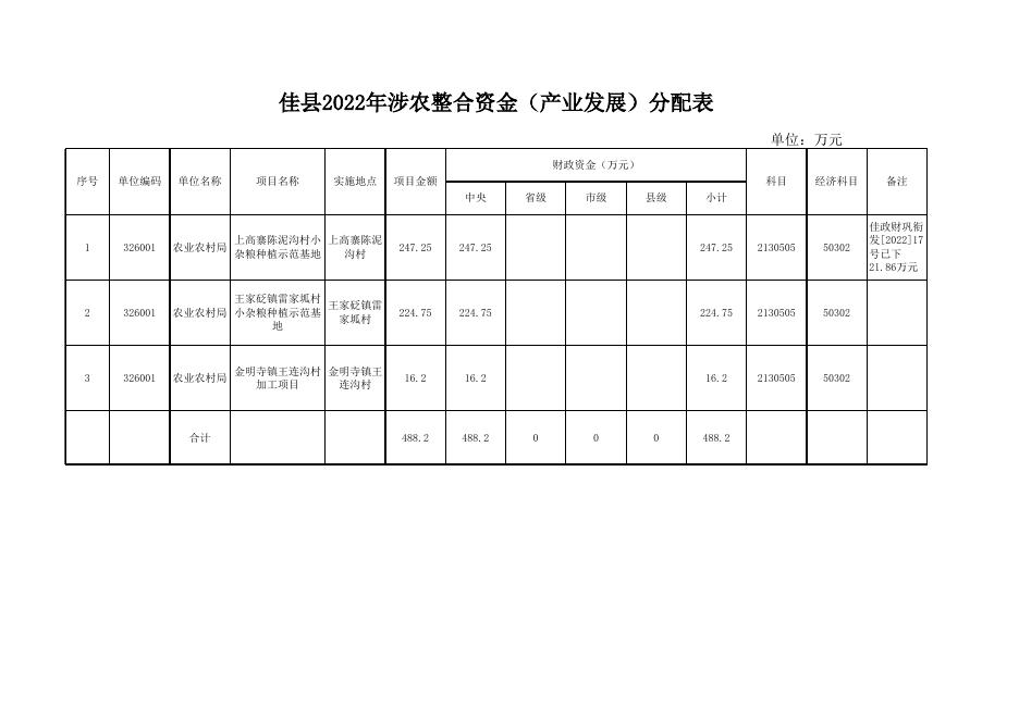 佳政财巩衔发〔2022〕18号关于拨付涉农整合资金.xlsx