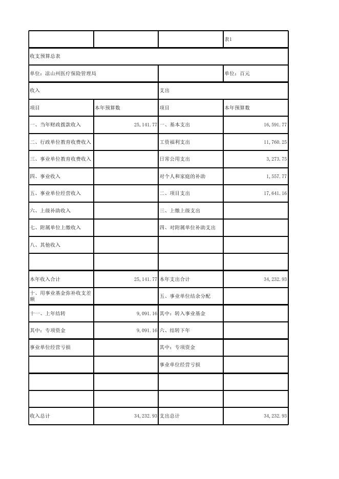 凉山州医疗保险管理局2015年部门预算.xlsx