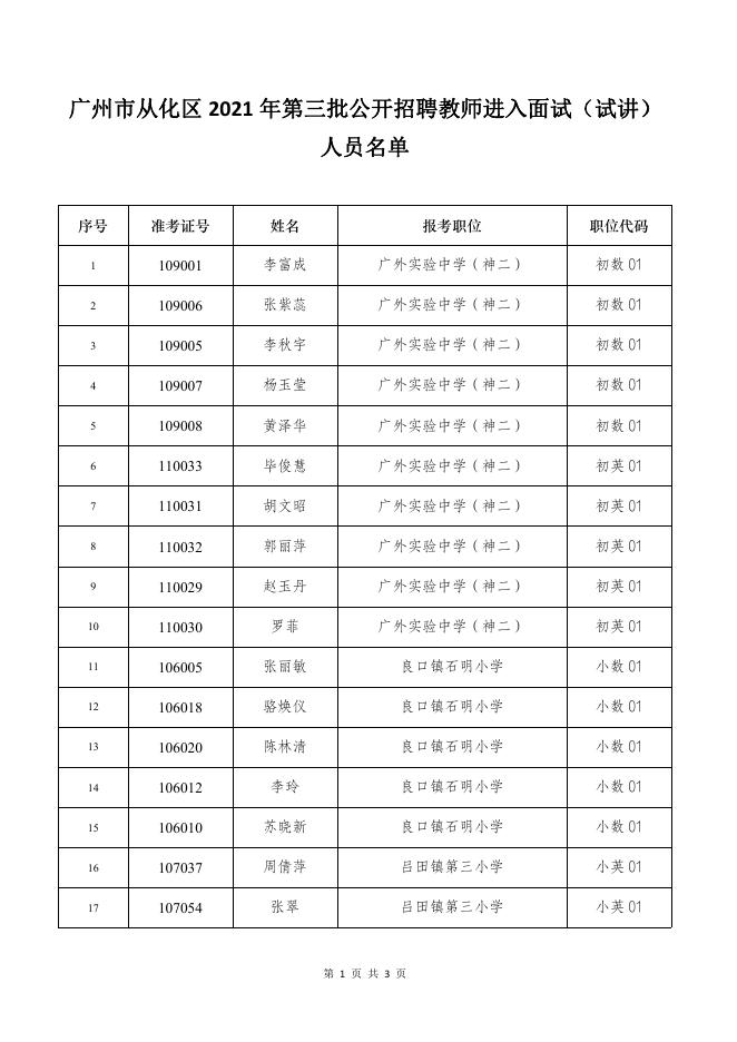 广州市从化区2021年第三批公开招聘教师进入面试(试讲)人员名单.pdf